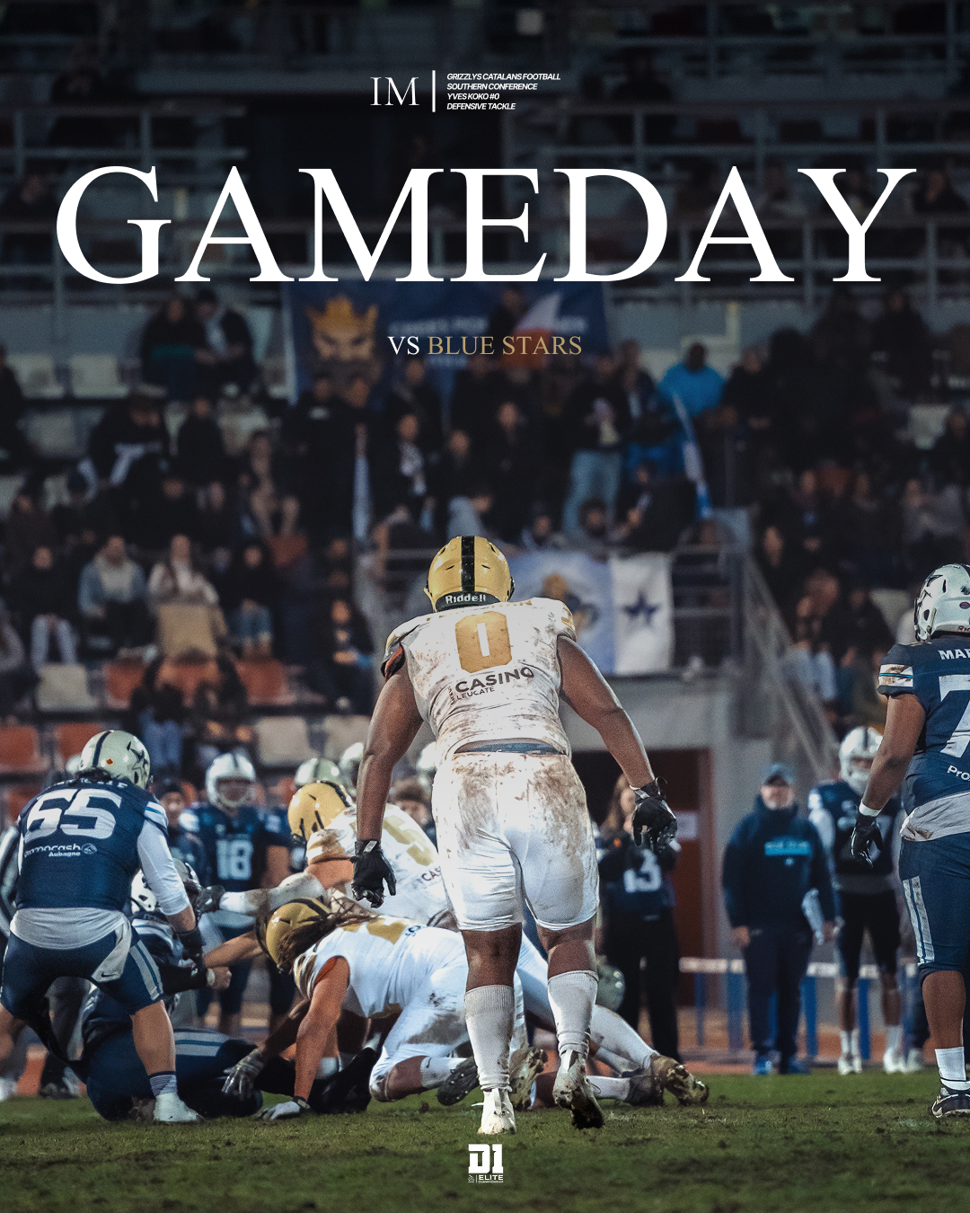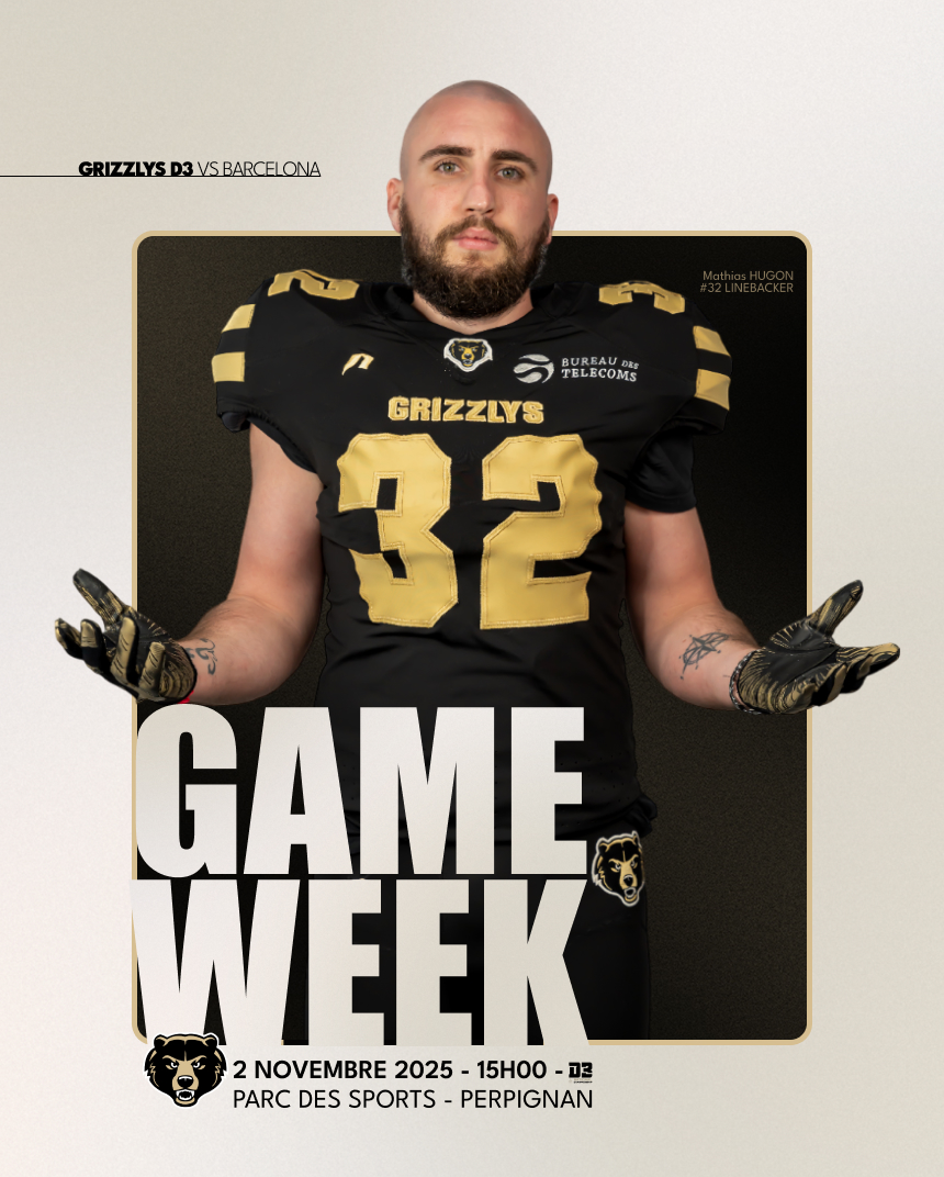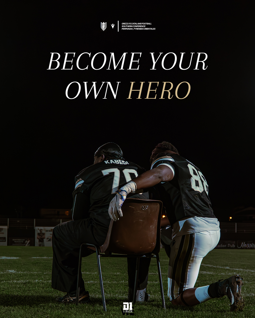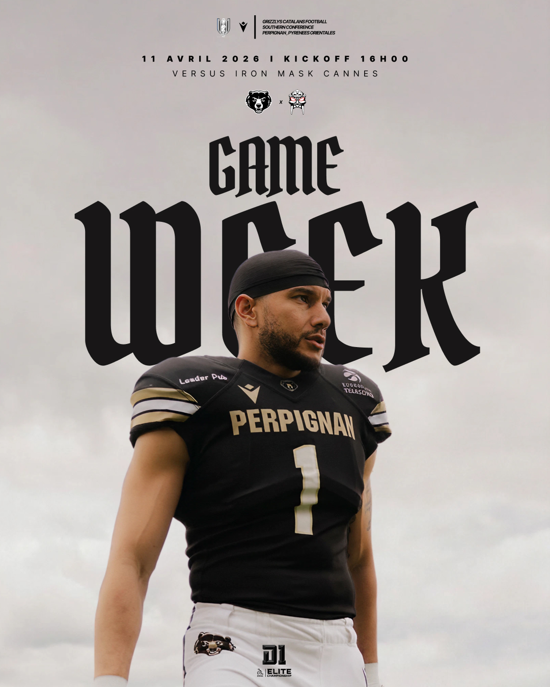 Affiche vidéo de match pour la section Élite des Grizzlys Catalans face aux Ours de Toulouse. Format conçu pour l'affichage urbain — composition pensée pour être lue en mouvement, à distance, en quelques secondes.